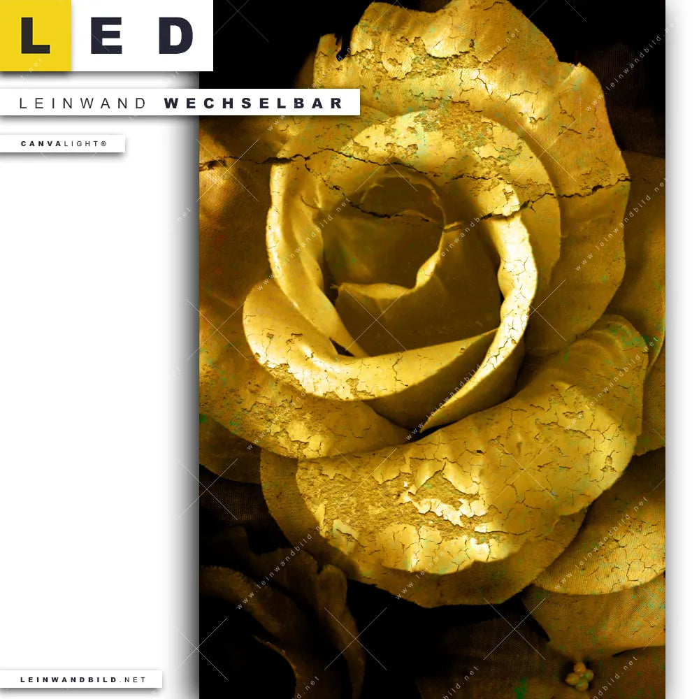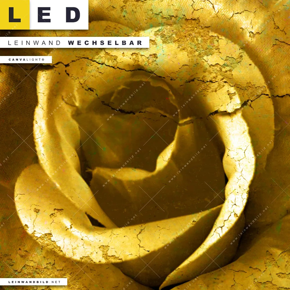 LED Leinwandbild Canvalight® TEX | Goldene Rose | Hochformat