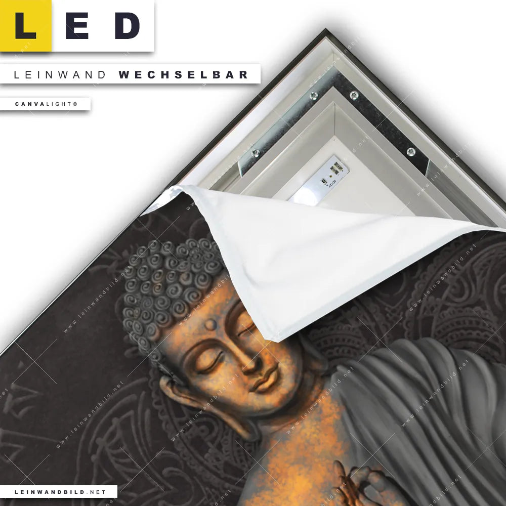 Du konfigurierst Dein individuelles LED Leinwandbild Canvalight® TEX | Goldener Buddha | Hochformat und wir produzieren es NEU für Dich. Unsere Buddha - Feng Shui LED Bilder mit wechselbarer Textil-Leinwand sind KEINE Lagerware. Du bist Dir unsicher, welches Motiv oder Format das richtige für dein individuelles Canvalight® Leuchtbild ist, dann helfen wir dir gerne weiter und beraten dich!