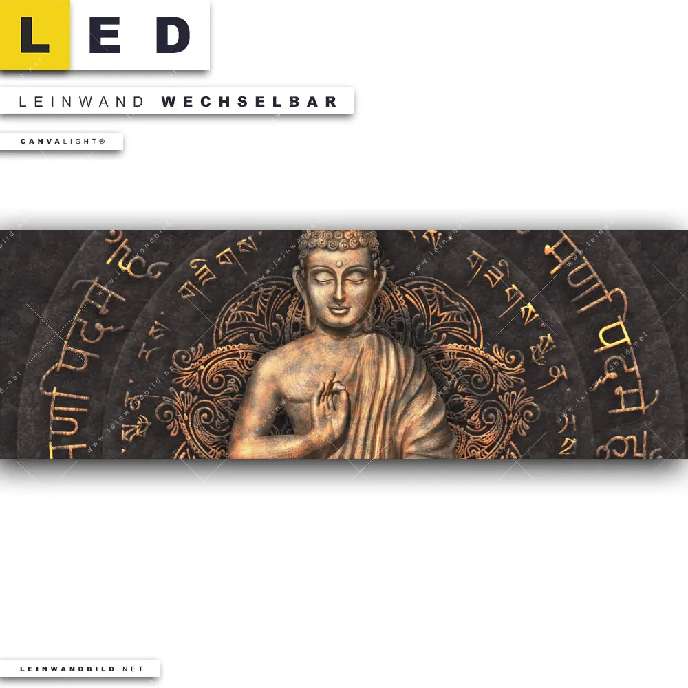 LED Leinwandbild Canvalight® TEX | Goldener Buddha No.2 | Panorama