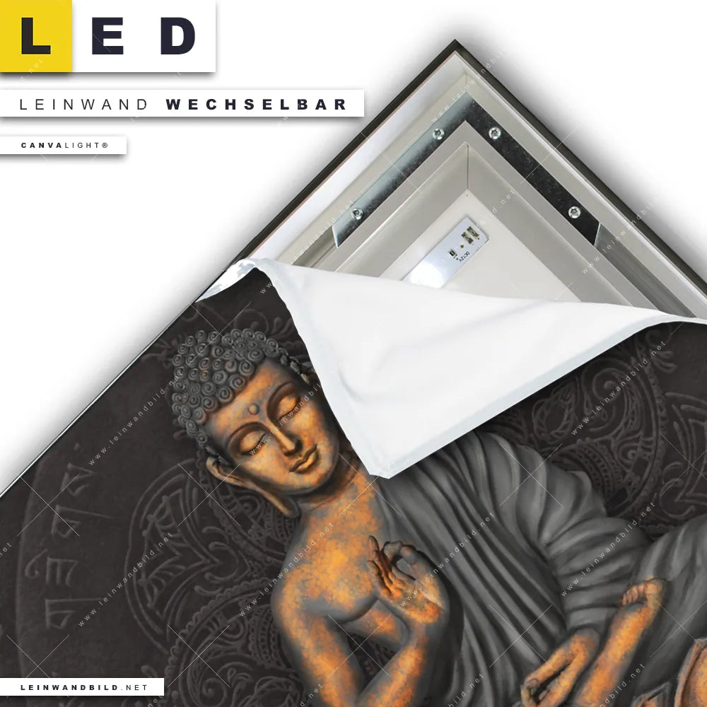 Du bist auf der Suche nach einem Buddha - Feng Shui LED Leinwandbild im Quadratischen Format? Begriffe wie Buddha, Buddhismus, Religion, Feng Shui, Zen, Meditation haben Dich auf der Suche nach Deinem neuen XXL LED Wandbild mit wechselbarer Leinwand inspiriert? Farben wie Schwarz, Gold dürfen auf Deinem neuen Leinwand-LED-Bild nicht fehlen und Leuchtbilder im Modern Art, Mixed Media Stil passen perfekt zu Deinem Einrichtungsstil?