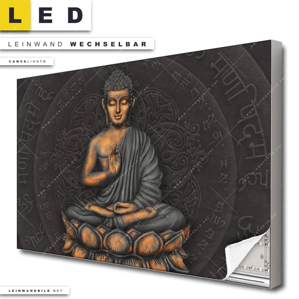 Du bist auf der Suche nach einem Buddha - Feng Shui LED Leinwandbild im Querformat? Begriffe wie Buddha, Buddhismus, Religion, Feng Shui, Zen, Meditation haben Dich auf der Suche nach Deinem neuen XXL LED Wandbild mit wechselbarer Leinwand inspiriert? Farben wie Schwarz, Gold dürfen auf Deinem neuen breiten Leinwand-LED-Bild nicht fehlen und Leuchtbilder im Modern Art, Mixed Media Stil passen perfekt zu Deinem Einrichtungsstil?