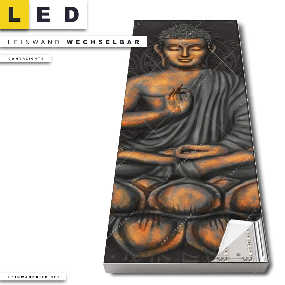 LED Leinwandbild Canvalight® TEX | Goldener Buddha | Schmal