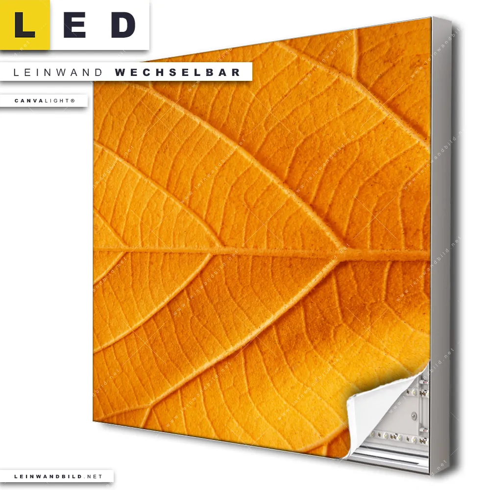 Du konfigurierst Dein individuelles LED Leinwandbild Canvalight® TEX | Goldenes Blatt | Quadrat und wir produzieren es NEU für Dich. Unsere Muster - Texturen, Blumen - Botanik LED Bilder mit wechselbarer Textil-Leinwand sind KEINE Lagerware. Du bist Dir unsicher, welches Motiv oder Format das richtige für dein individuelles Canvalight® Leuchtbild ist, dann helfen wir dir gerne weiter und beraten dich!