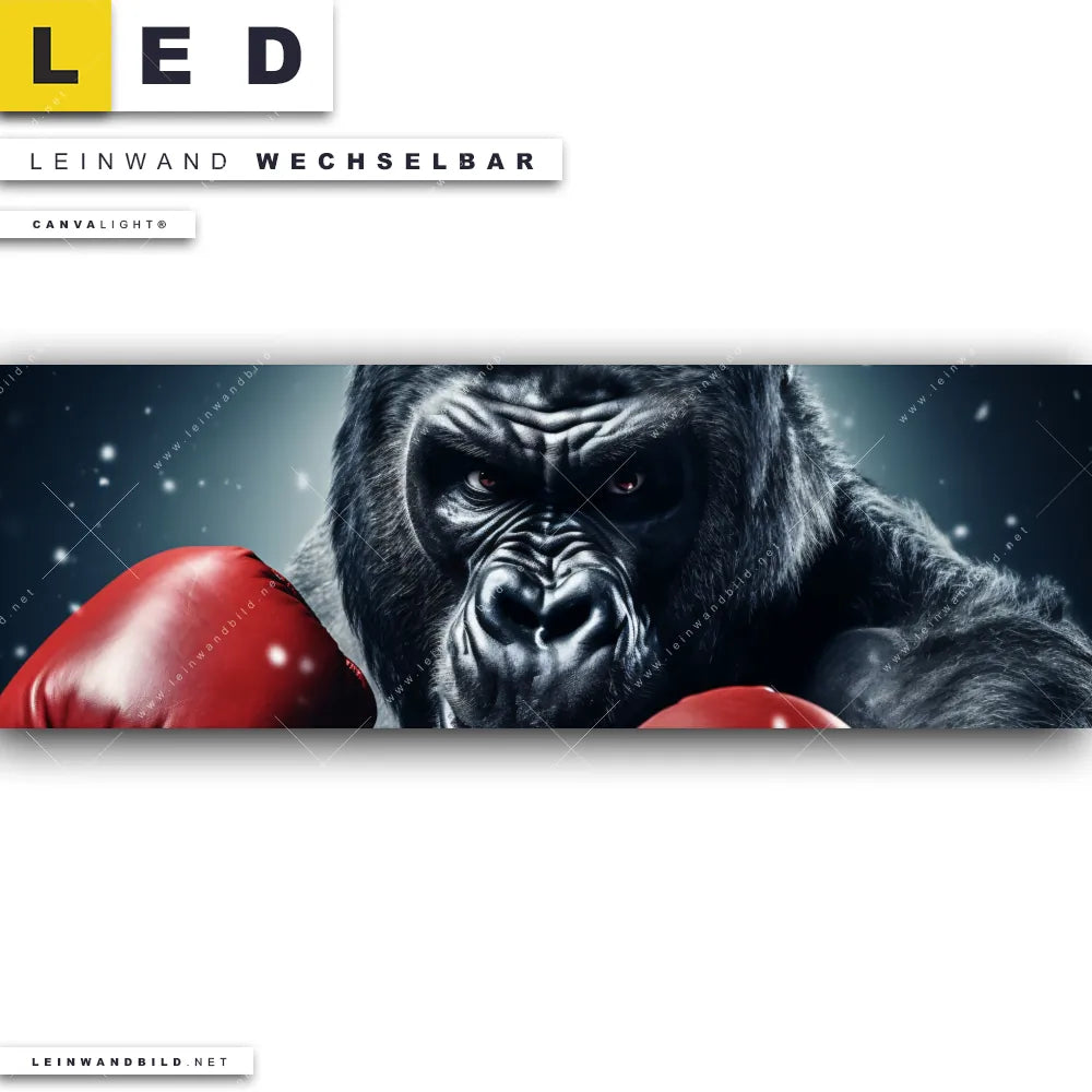 LED Leinwandbild Canvalight® TEX | Gorilla mit roten Boxhandschuhen | Panorama
