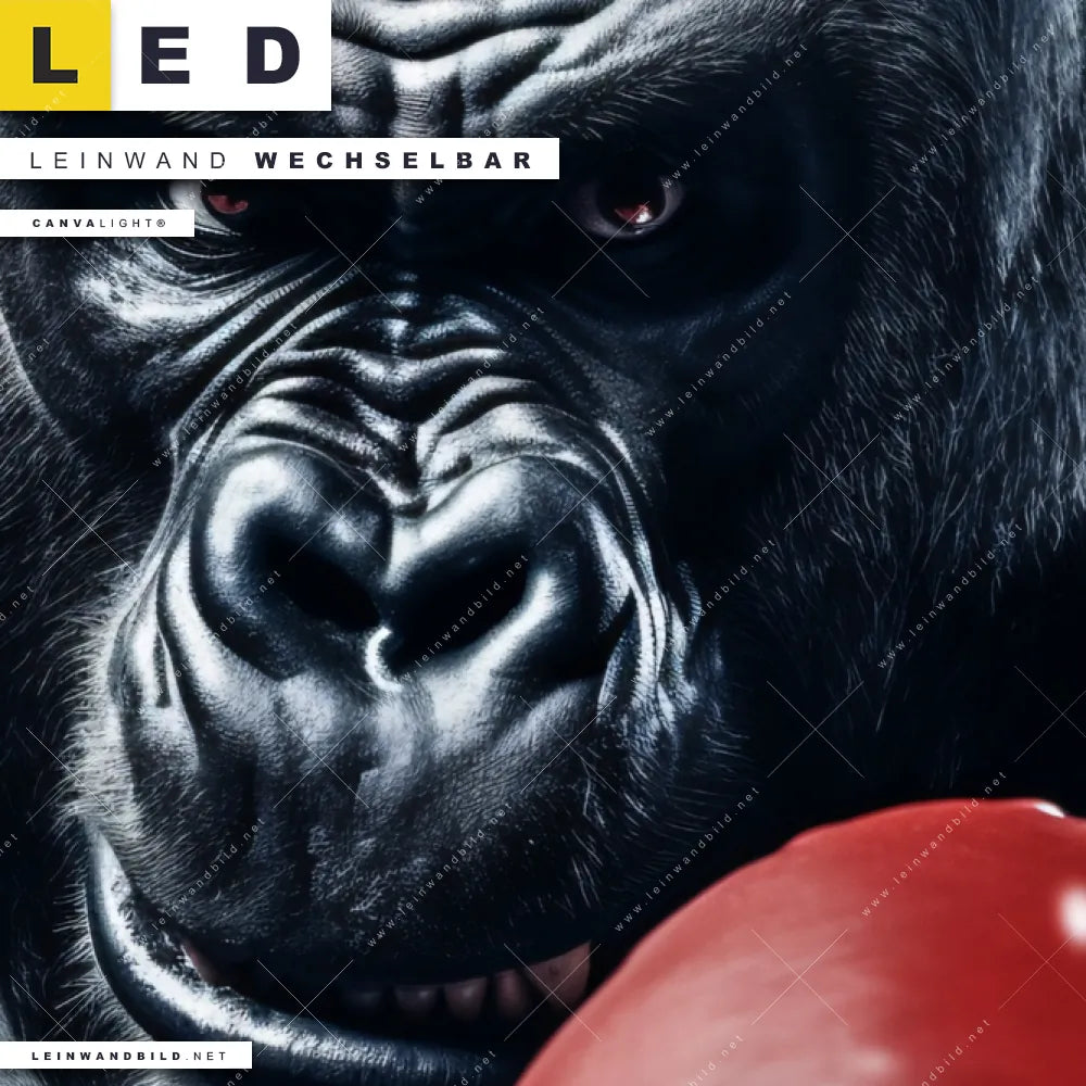 Du bist auf der Suche nach einem Tierwelt LED Leinwandbild im Panorama-Format? Begriffe wie Tier, Gorilla, Boxhandschuh, Kraft, Stärke, Entschlossenheit, Kampfgeist, Energie haben Dich auf der Suche nach Deinem neuen XXL LED Wandbild mit wechselbarer Leinwand inspiriert? Farben wie Grau , Rot, Weiss, Schwarz dürfen auf Deinem neuen extra breiten Leinwand-LED-Bild nicht fehlen und Leuchtbilder im Surreal - Fantasy, Pop Art, Modern Art Stil passen perfekt zu Deinem Einrichtungsstil?