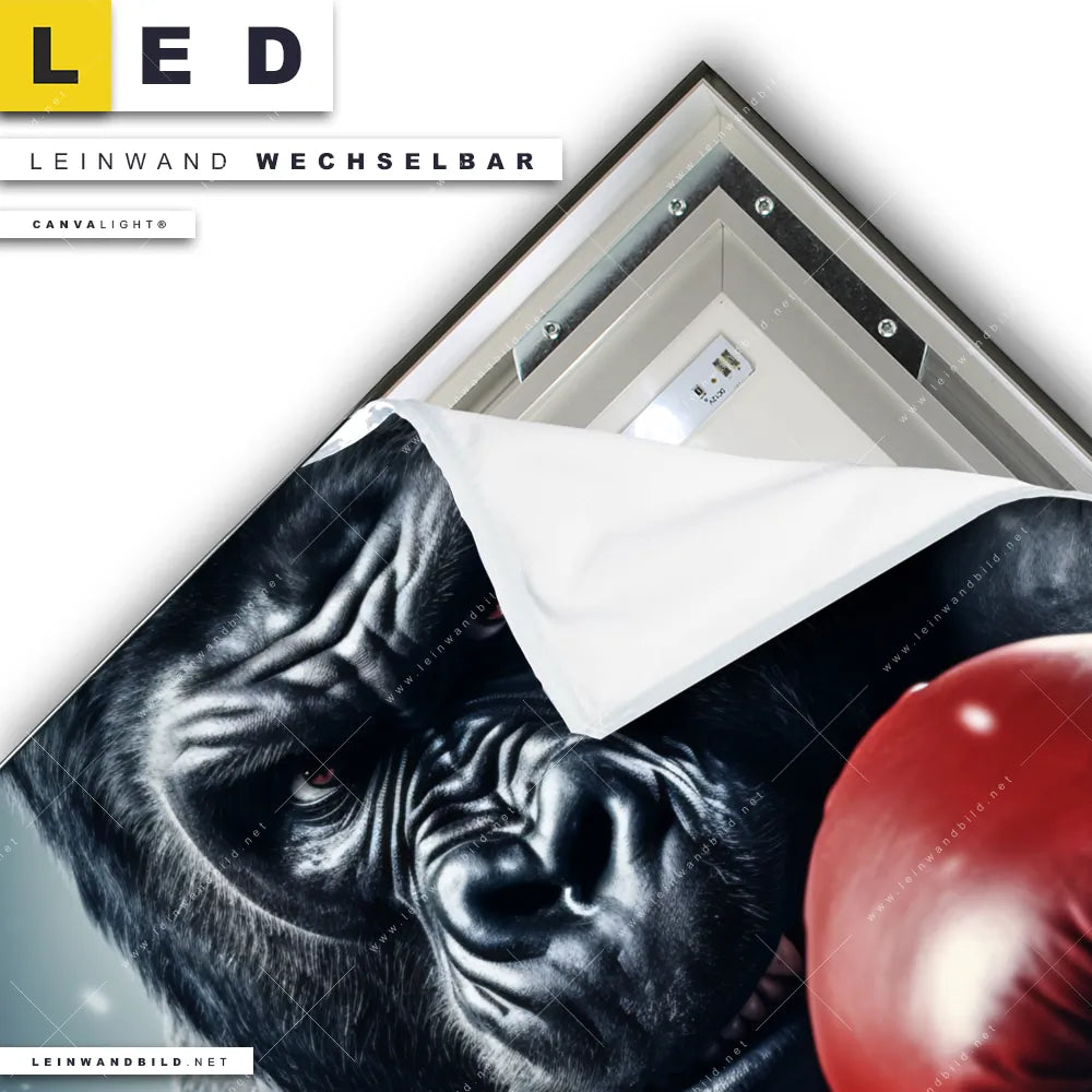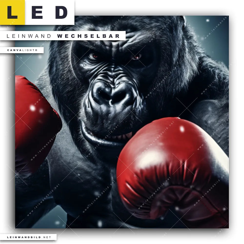 LED Leinwandbild Canvalight® TEX | Gorilla mit roten Boxhandschuhen | Quadrat