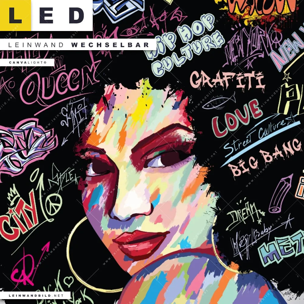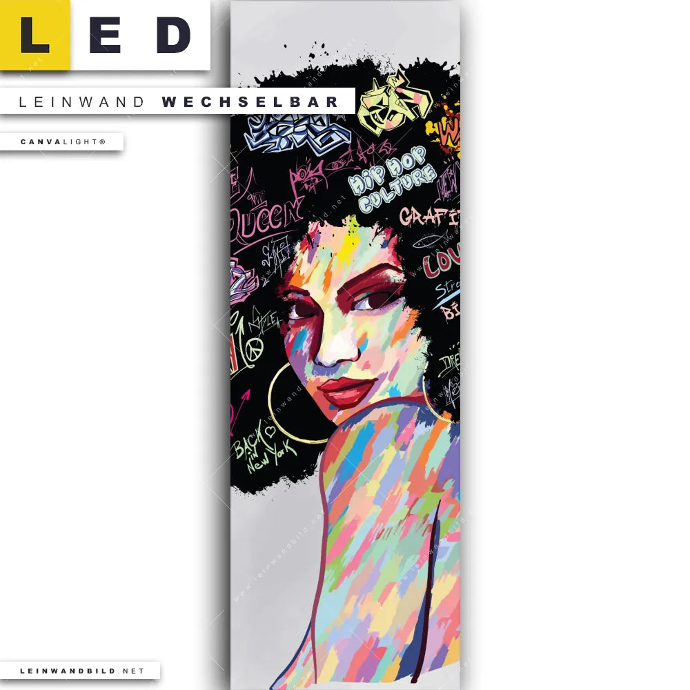 LED Leinwandbild Canvalight® TEX | Graffiti Afro No.1 | Schmal