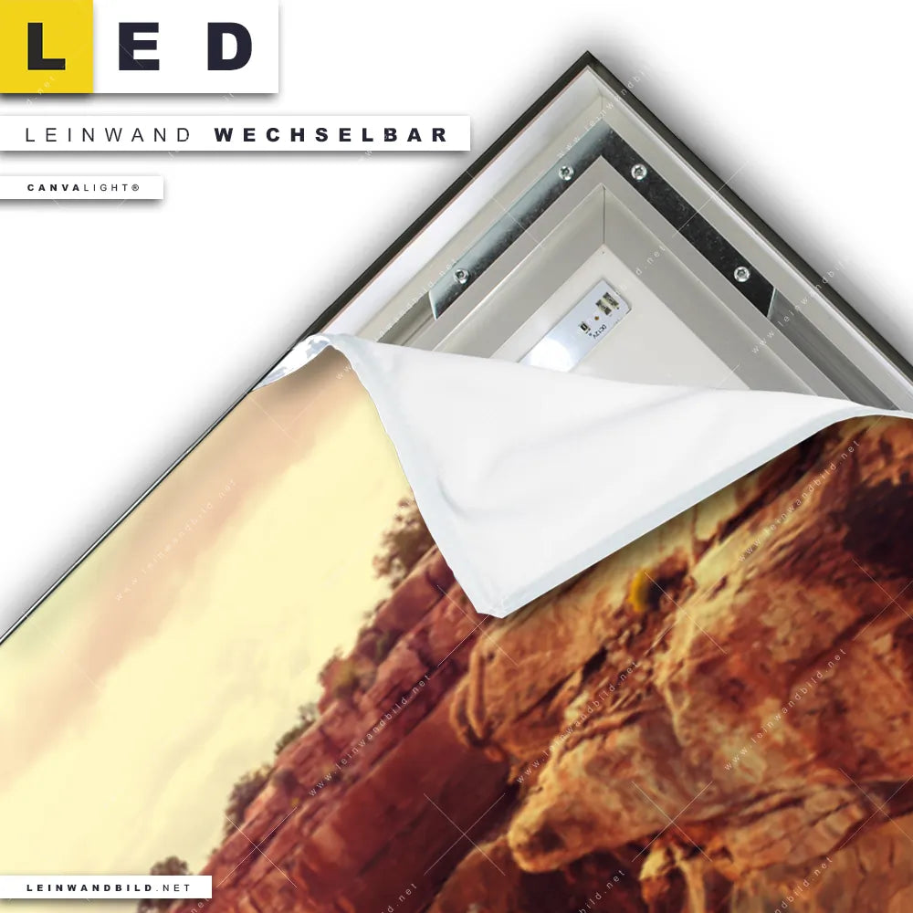Du konfigurierst Dein individuelles LED Leinwandbild Canvalight® TEX | Grand Canyon Landschaft | Panorama und wir produzieren es NEU für Dich. Unsere Landschaften LED Bilder mit wechselbarer Textil-Leinwand sind KEINE Lagerware. Du bist Dir unsicher, welches Motiv oder Format das richtige für dein individuelles Canvalight® Leuchtbild ist, dann helfen wir dir gerne weiter und beraten dich!