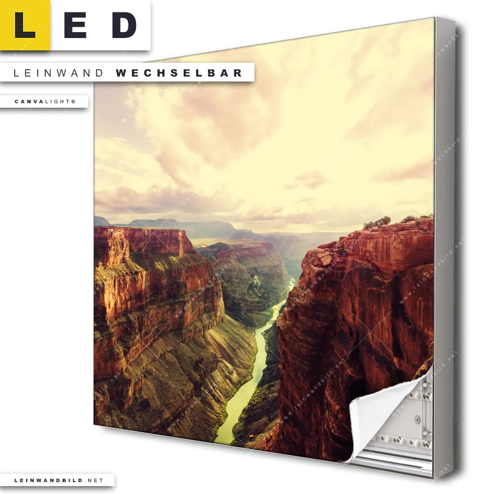 Du konfigurierst Dein individuelles LED Leinwandbild Canvalight® TEX | Grand Canyon Landschaft | Quadrat und wir produzieren es NEU für Dich. Unsere Landschaften LED Bilder mit wechselbarer Textil-Leinwand sind KEINE Lagerware. Du bist Dir unsicher, welches Motiv oder Format das richtige für dein individuelles Canvalight® Leuchtbild ist, dann helfen wir dir gerne weiter und beraten dich!