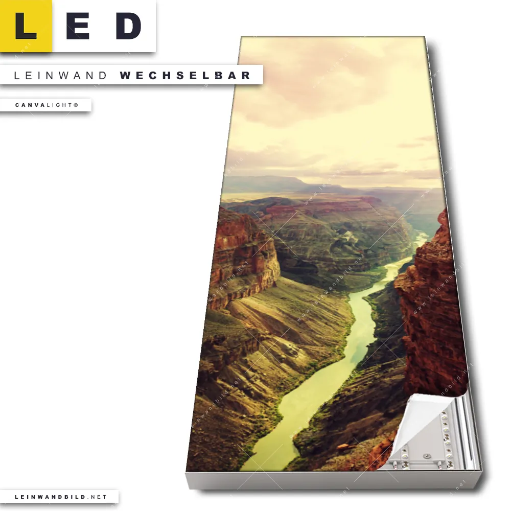 Du konfigurierst Dein individuelles LED Leinwandbild Canvalight® TEX | Grand Canyon Landschaft | Schmal und wir produzieren es NEU für Dich. Unsere Landschaften LED Bilder mit wechselbarer Textil-Leinwand sind KEINE Lagerware. Du bist Dir unsicher, welches Motiv oder Format das richtige für dein individuelles Canvalight® Leuchtbild ist, dann helfen wir dir gerne weiter und beraten dich!