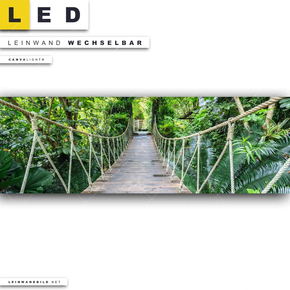 LED Leinwandbild Canvalight® TEX | Hängebrücke im Dschungel | Panorama
