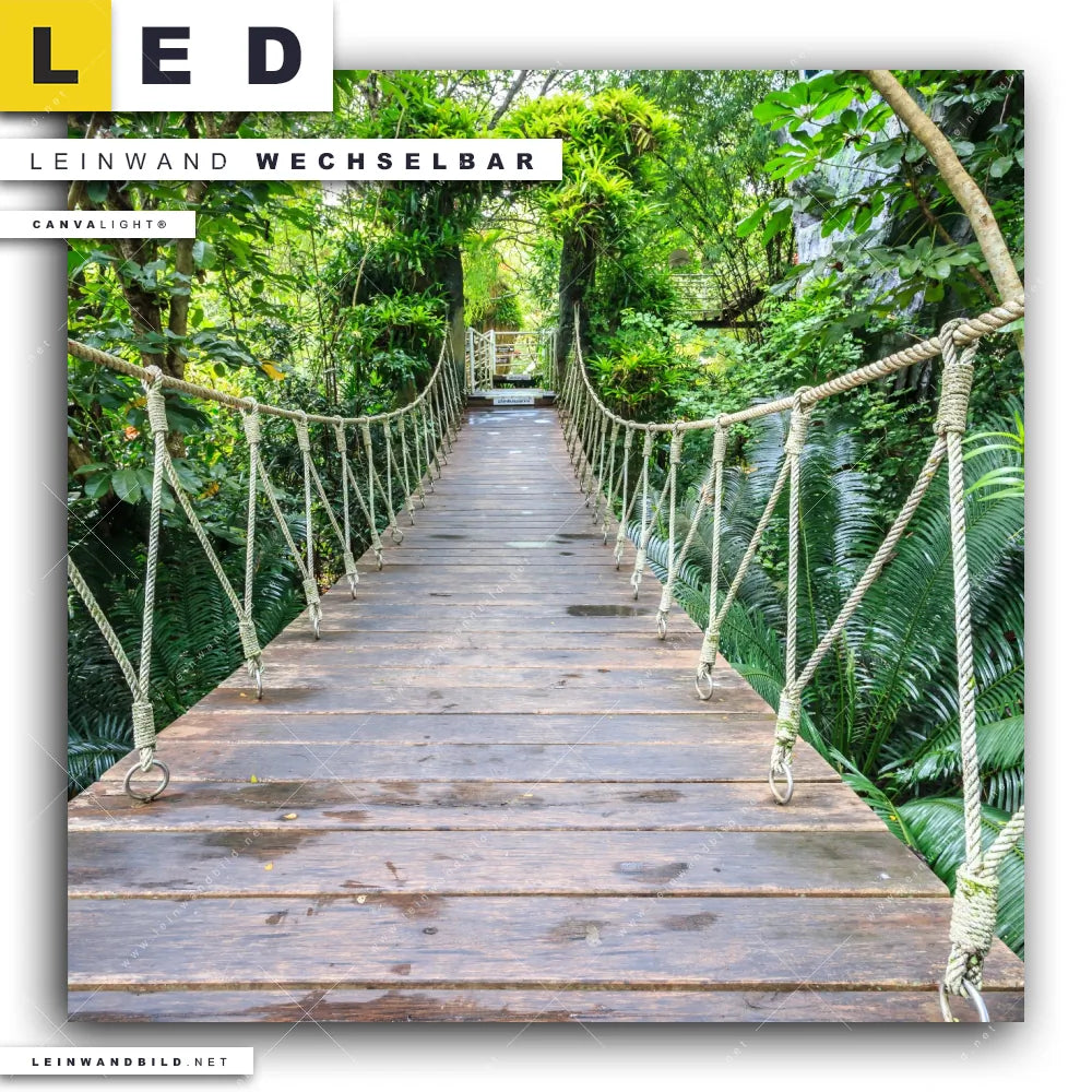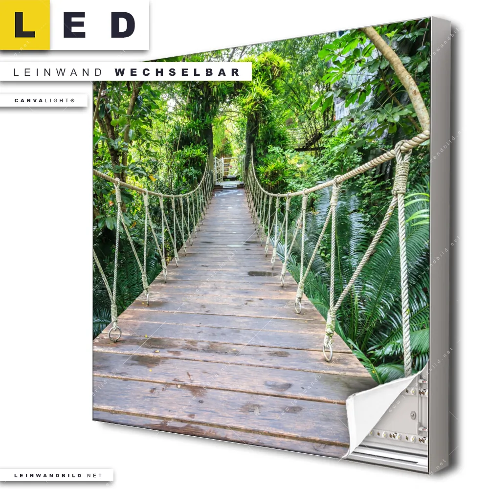 LED Leinwandbild Canvalight® TEX | Hängebrücke im Dschungel | Quadrat