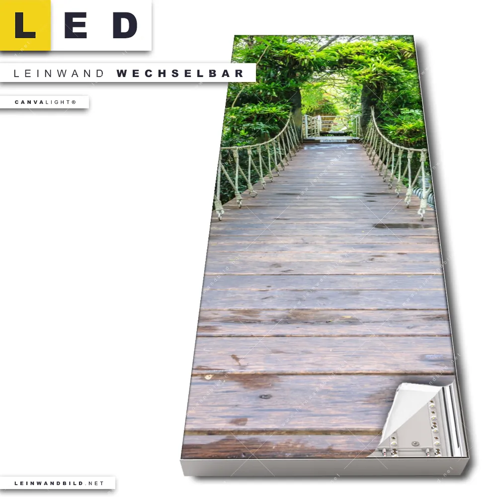 LED Leinwandbild Canvalight® TEX | Hängebrücke im Dschungel | Schmal