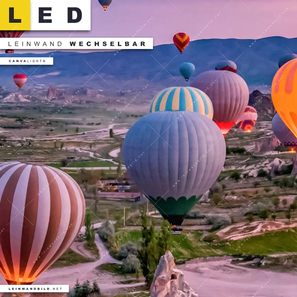 LED Leinwandbild Canvalight® TEX | Heißluftballons im Sonnenuntergang | Panorama