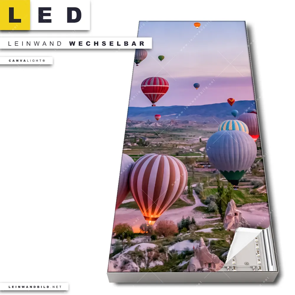 LED Leinwandbild Canvalight® TEX | Heißluftballons im Sonnenuntergang | Schmal