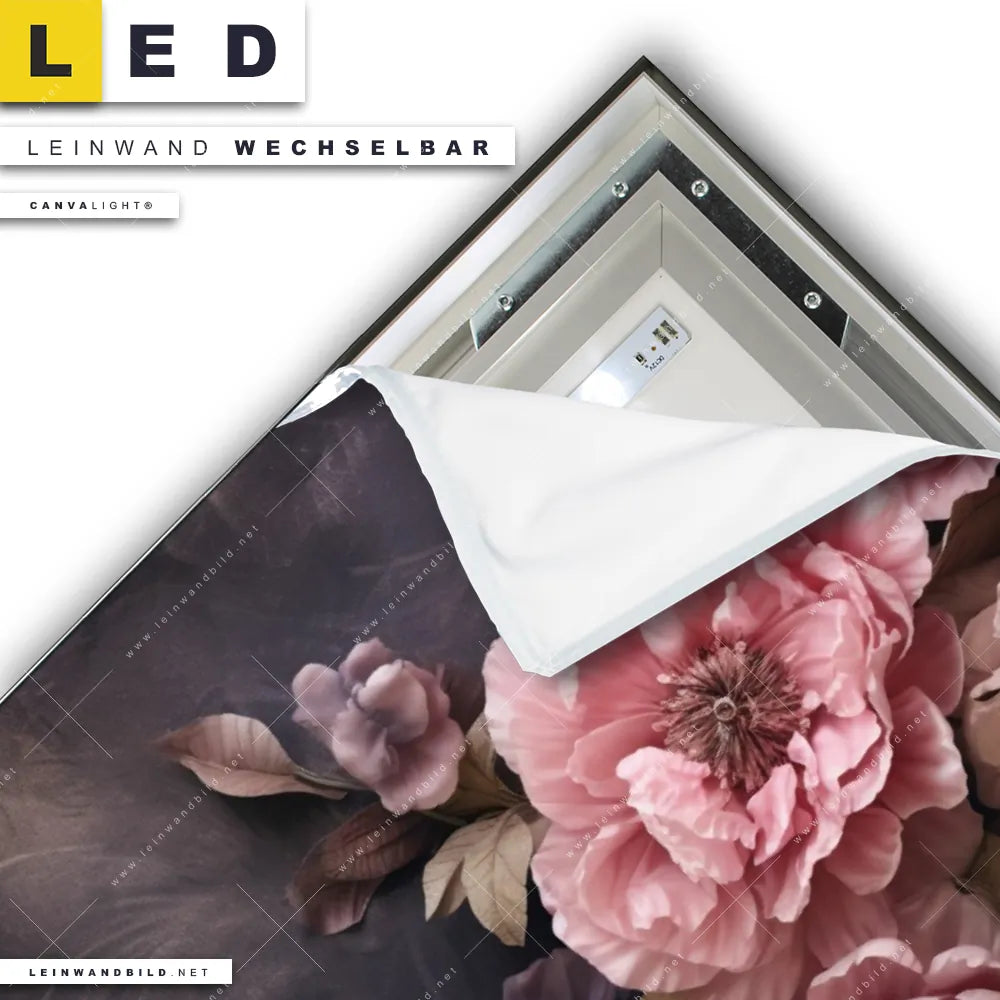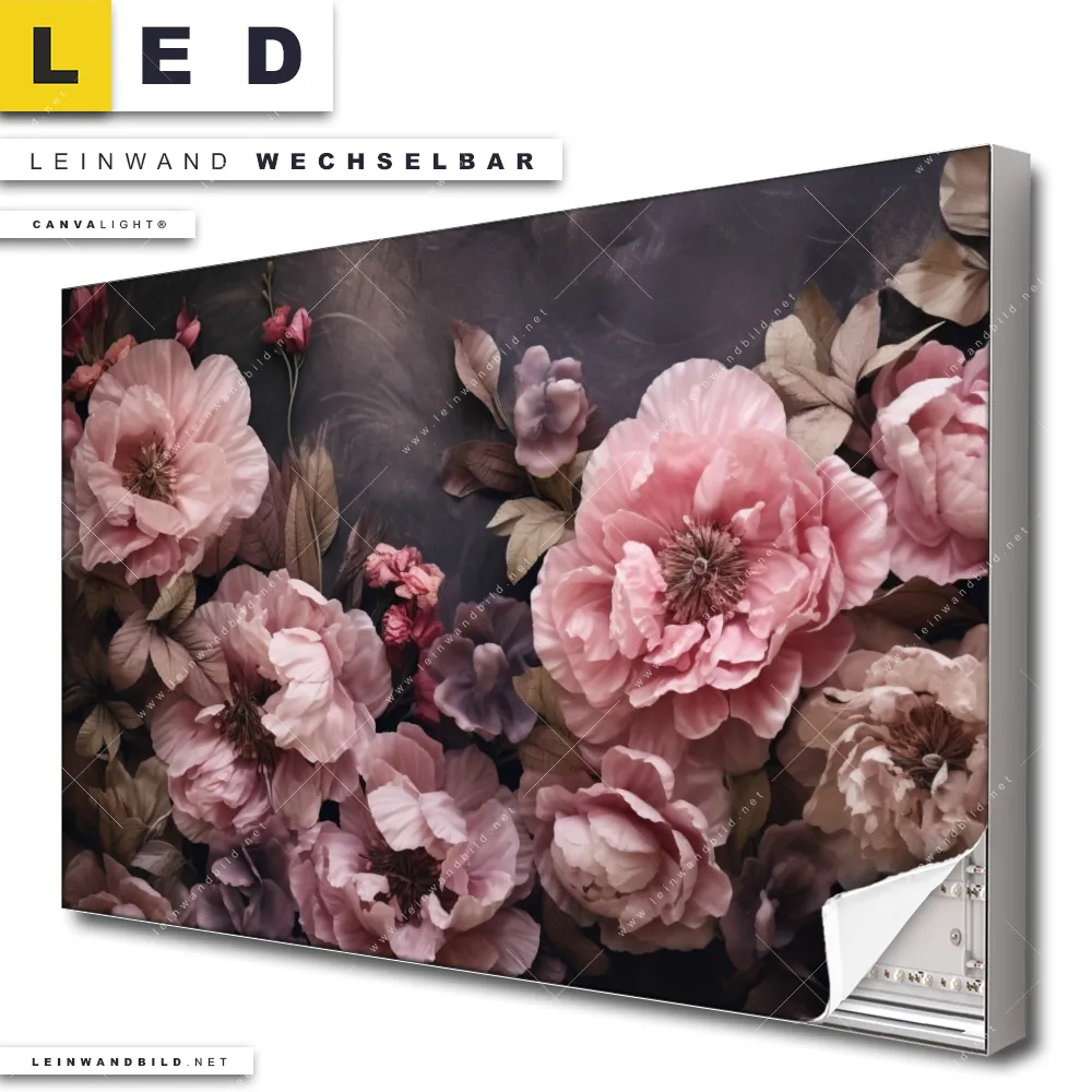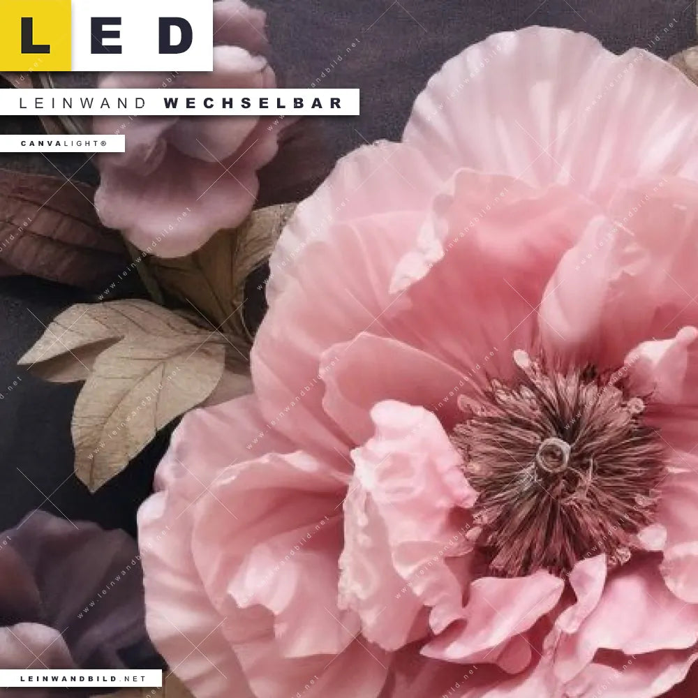 Du bist auf der Suche nach einem Blumen - Botanik LED Leinwandbild im Querformat? Begriffe wie Pflanze, Natur, Blüte, Rose haben Dich auf der Suche nach Deinem neuen XXL LED Wandbild mit wechselbarer Leinwand inspiriert? Farben wie Grau , Rosa dürfen auf Deinem neuen breiten Leinwand-LED-Bild nicht fehlen und Leuchtbilder im Floral, Retro - Vintage Stil passen perfekt zu Deinem Einrichtungsstil?
