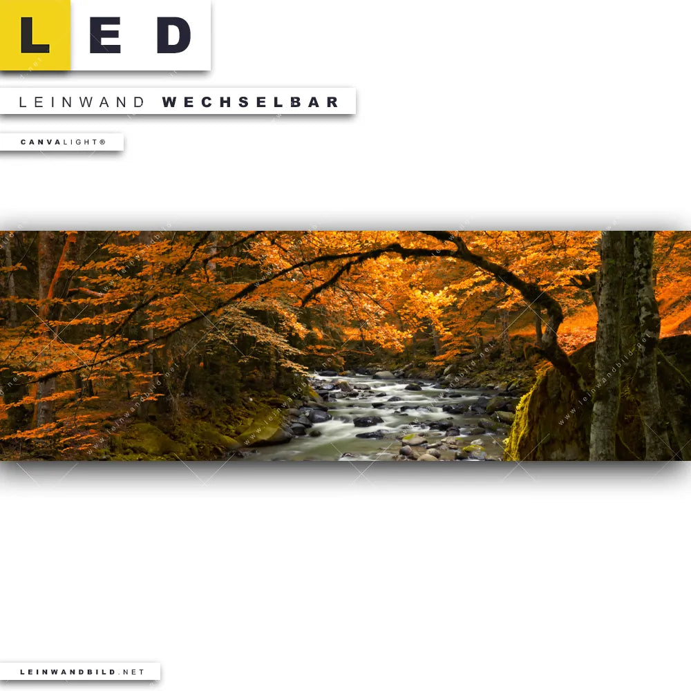 Du bist auf der Suche nach einem Landschaften, Wald - Bäume LED Leinwandbild im Panorama-Format? Begriffe wie Wald, Landschaft, Baum, Bäume, Natur, Laubwald, Fluss haben Dich auf der Suche nach Deinem neuen XXL LED Wandbild mit wechselbarer Leinwand inspiriert? Farben wie Schwarz, Braun, Bunt, Beige, Grün, Gold, Ocker, Orange dürfen auf Deinem neuen extra breiten Leinwand-LED-Bild nicht fehlen und Leuchtbilder im Natürlich - Realistisch Stil passen perfekt zu Deinem Einrichtungsstil?