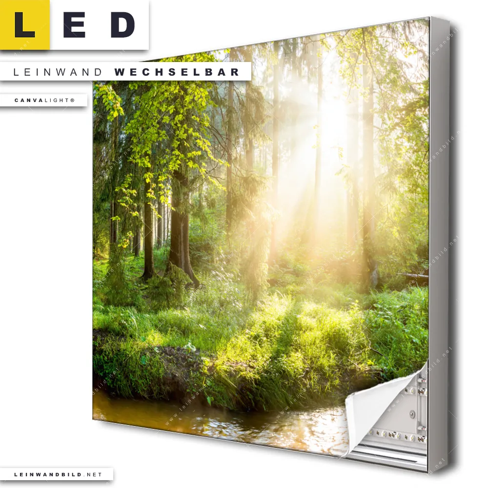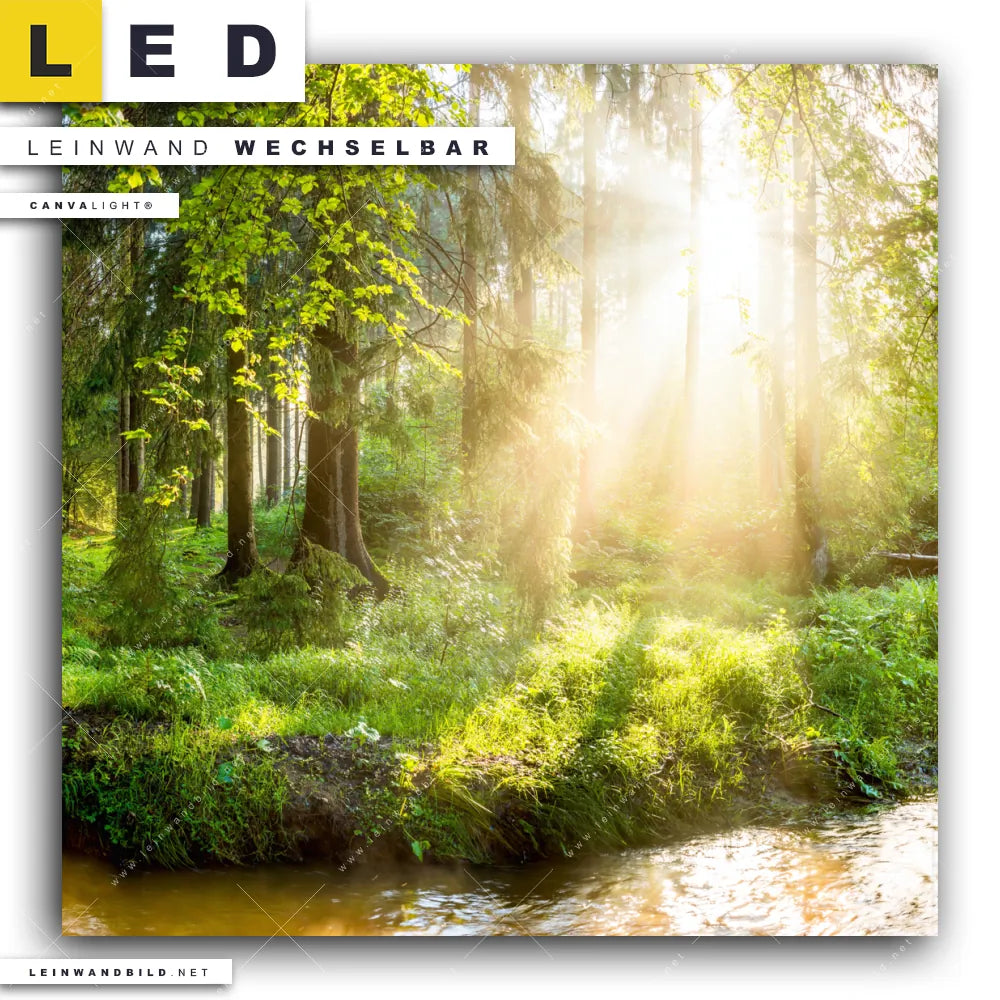Du bist auf der Suche nach einem Landschaften, Wald - Bäume LED Leinwandbild im Quadratischen Format? Begriffe wie Wald, Landschaft, Baum, Bäume, Natur, Sonne, Sonnenstrahlen, Licht, Fluss, Sonnenschein, Sonnenlicht, Waldweg, Nadelwald, Tannen, Weg haben Dich auf der Suche nach Deinem neuen XXL LED Wandbild mit wechselbarer Leinwand inspiriert? Farben wie Grün, Braun, Hellgrün, Beige dürfen auf Deinem neuen Leinwand-LED-Bild nicht fehlen und Leuchtbilder im Natürlich - Realistisch, Modern Art Stil passen perfekt zu Deinem Einrichtungsstil?