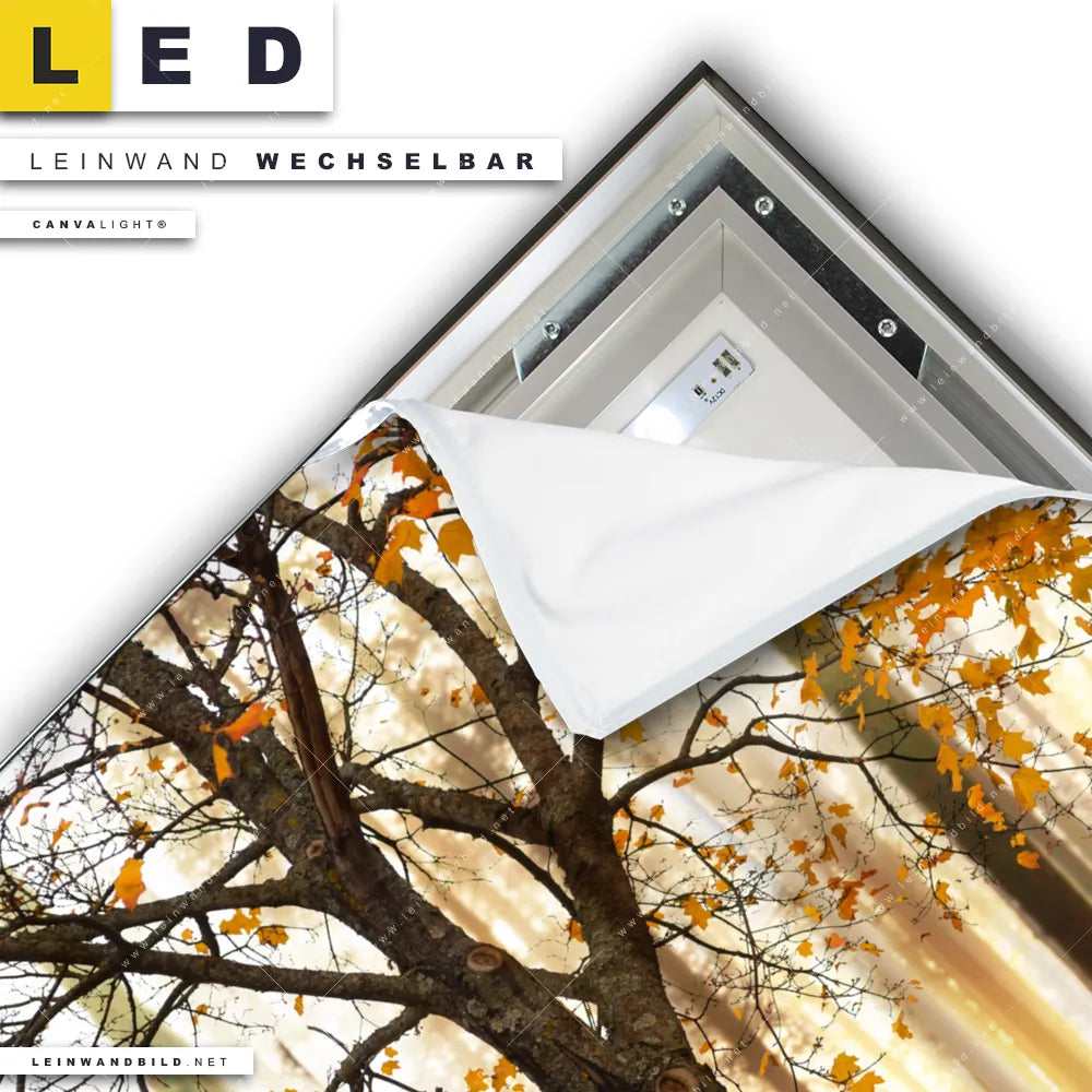 Du konfigurierst Dein individuelles LED Leinwandbild Canvalight® TEX | Herbstspaziergang | Quadrat und wir produzieren es NEU für Dich. Unsere Landschaften, Wald - Bäume LED Bilder mit wechselbarer Textil-Leinwand sind KEINE Lagerware. Du bist Dir unsicher, welches Motiv oder Format das richtige für dein individuelles Canvalight® Leuchtbild ist, dann helfen wir dir gerne weiter und beraten dich!