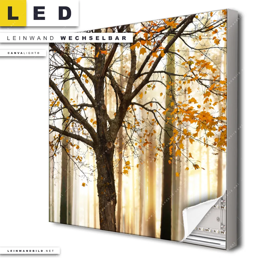Du bist auf der Suche nach einem Landschaften, Wald - Bäume LED Leinwandbild im Quadratischen Format? Begriffe wie Wald, Landschaft, Bäume, Natur, Baum, Buche, Ruhe, Stille haben Dich auf der Suche nach Deinem neuen XXL LED Wandbild mit wechselbarer Leinwand inspiriert? Farben wie Braun, Orange dürfen auf Deinem neuen Leinwand-LED-Bild nicht fehlen und Leuchtbilder im Retro - Vintage Stil passen perfekt zu Deinem Einrichtungsstil?
