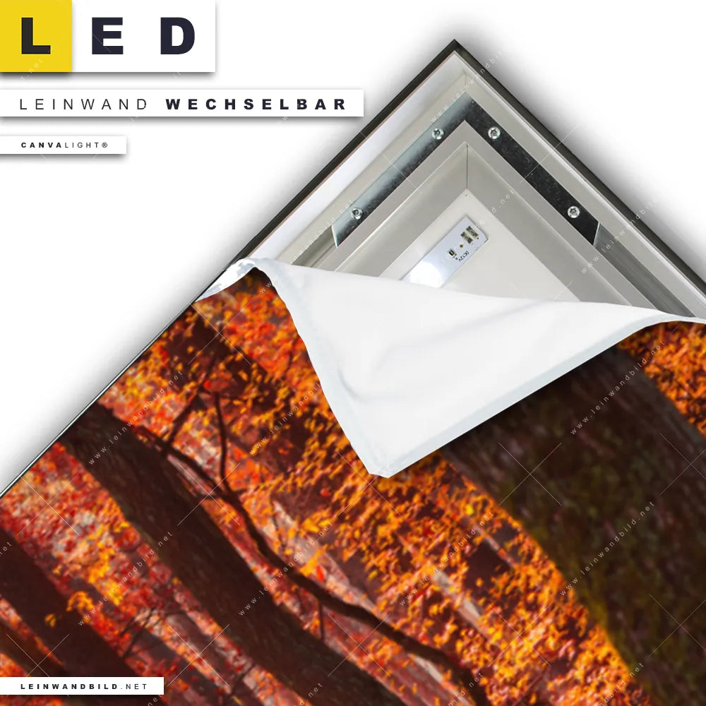 Du konfigurierst Dein individuelles LED Leinwandbild Canvalight® TEX | Herbstwald | Panorama und wir produzieren es NEU für Dich. Unsere Landschaften, Wald - Bäume LED Bilder mit wechselbarer Textil-Leinwand sind KEINE Lagerware. Du bist Dir unsicher, welches Motiv oder Format das richtige für dein individuelles Canvalight® Leuchtbild ist, dann helfen wir dir gerne weiter und beraten dich!