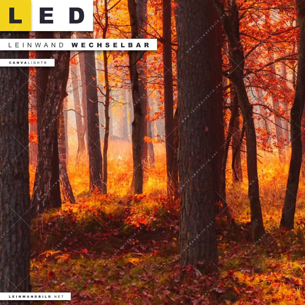 Bitte beachte, dass die Farben, der auf dem Monitor abgebildeten Farbenprächtiger Wald im Herbst Darstellung, möglicherweise von den Originalfarben deines LED Leinwandbildes abweichen können.