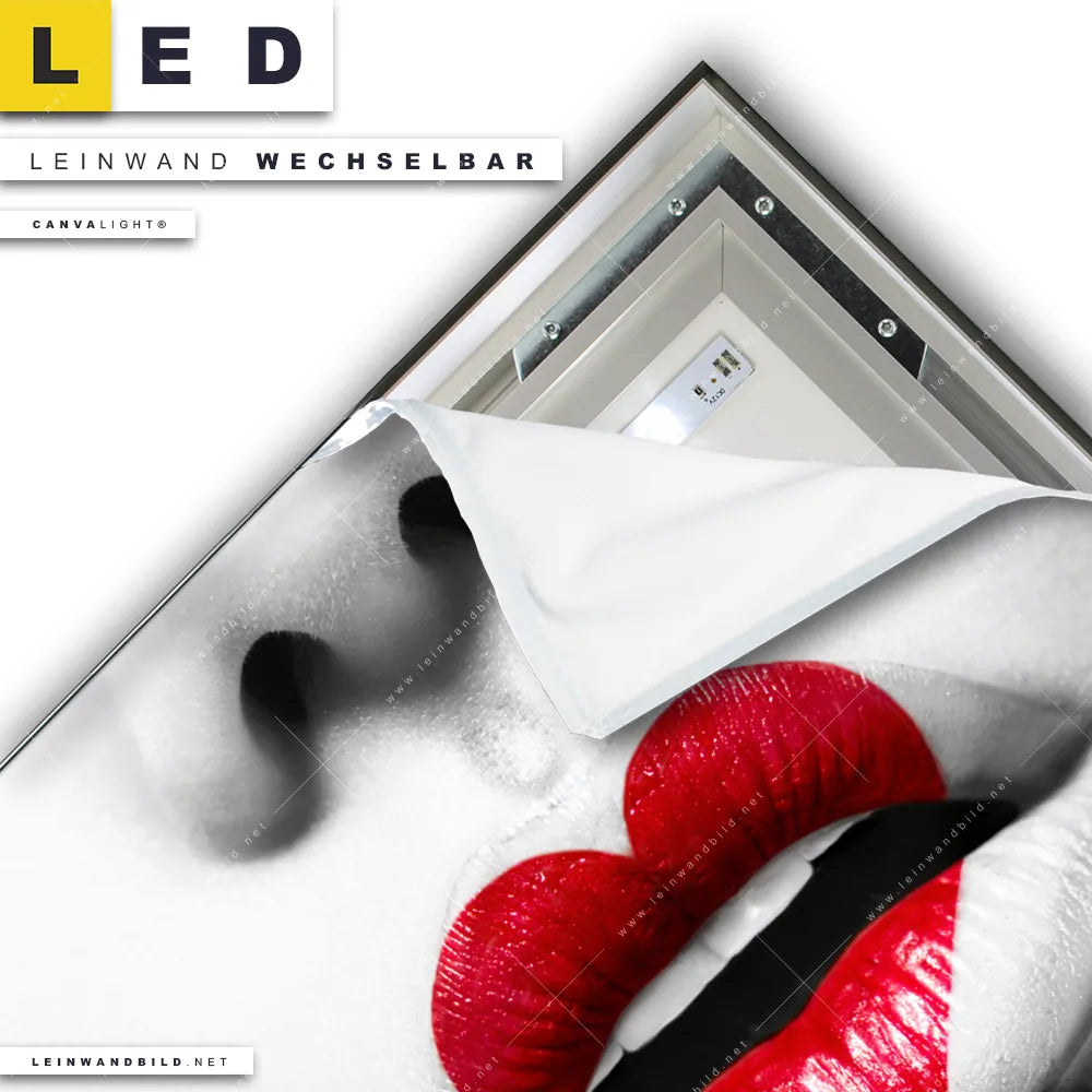 Du bist auf der Suche nach einem Porträts - Menschen LED Leinwandbild im Quadratischen Format? Begriffe wie Frau, Lippen, Mund, Porträt, Erotik, modern, Beauty, Herz haben Dich auf der Suche nach Deinem neuen XXL LED Wandbild mit wechselbarer Leinwand inspiriert? Farben wie Rot, Weiss, Schwarz, Grau dürfen auf Deinem neuen Leinwand-LED-Bild nicht fehlen und Leuchtbilder im Schwarz - Weiss, Modern Art Stil passen perfekt zu Deinem Einrichtungsstil?