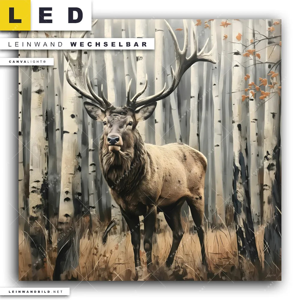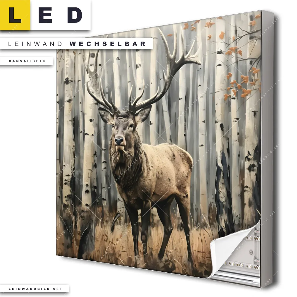 LED Leinwandbild Canvalight® TEX | Hirsch im Birkenwald | Quadrat