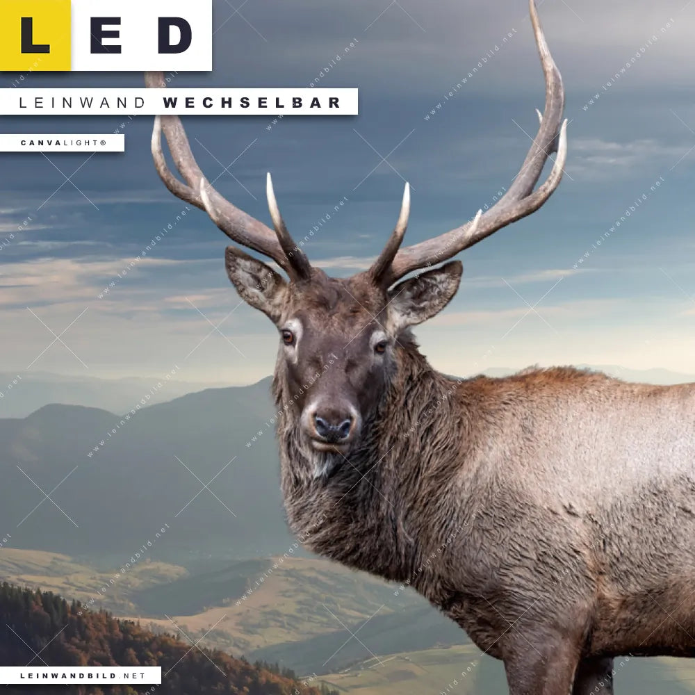 Du bist auf der Suche nach einem Landschaften, Tierwelt LED Leinwandbild im Hochformat? Begriffe wie Wald, Bäume, Natur, Hirsch, Deer, Wild, Rotwild, Berge, Feld haben Dich auf der Suche nach Deinem neuen XXL LED Wandbild mit wechselbarer Leinwand inspiriert? Farben wie Beige, Braun, Blau dürfen auf Deinem neuen Leinwand-LED-Bild nicht fehlen und Leuchtbilder im Natürlich - Realistisch Stil passen perfekt zu Deinem Einrichtungsstil?