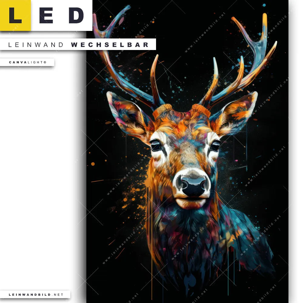 Du bist auf der Suche nach einem Tierwelt LED Leinwandbild im Hochformat? Begriffe wie Hirsch, Natur, Rotwild, Wald, Farbspritzer, Farbexplosion haben Dich auf der Suche nach Deinem neuen XXL LED Wandbild mit wechselbarer Leinwand inspiriert? Farben wie Schwarz, Bunt dürfen auf Deinem neuen Leinwand-LED-Bild nicht fehlen und Leuchtbilder im Modern Art, Pop Art, Abstrakt Stil passen perfekt zu Deinem Einrichtungsstil?