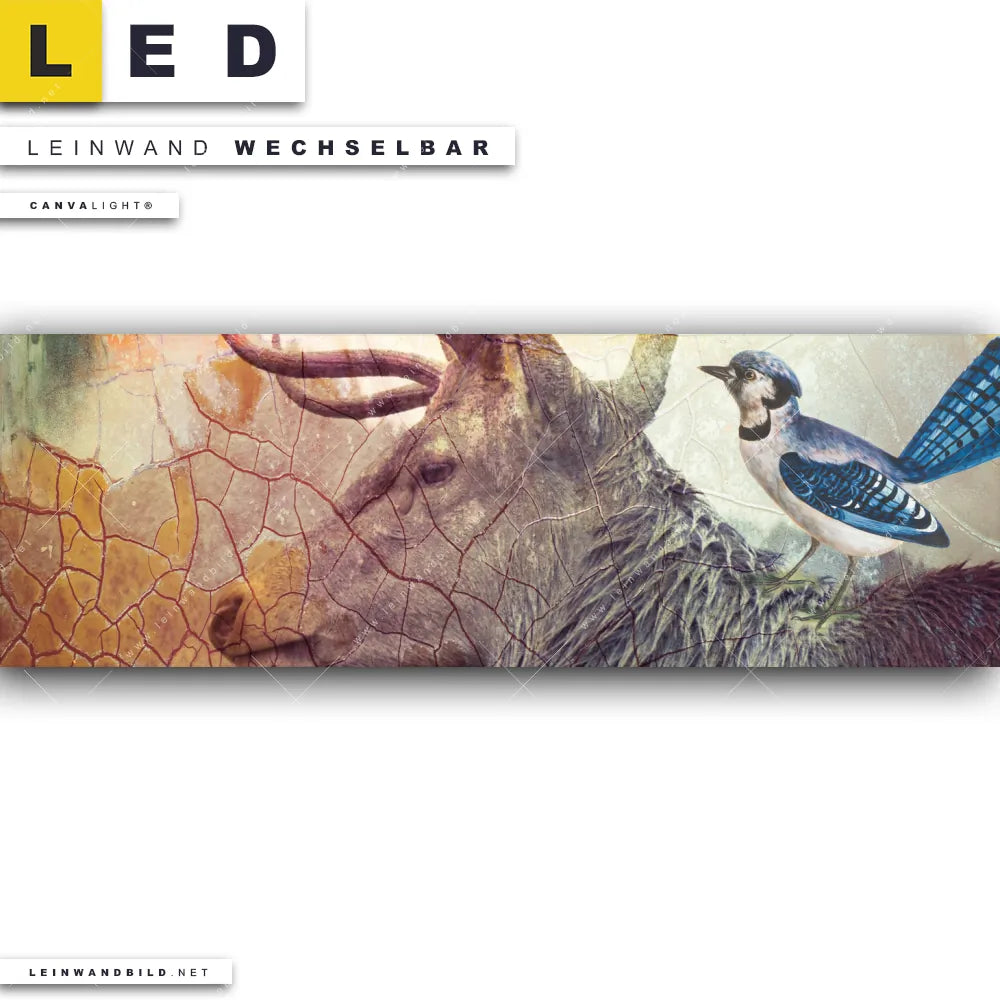 LED Leinwandbild Canvalight® TEX | Hirsch & Vögel | Panorama