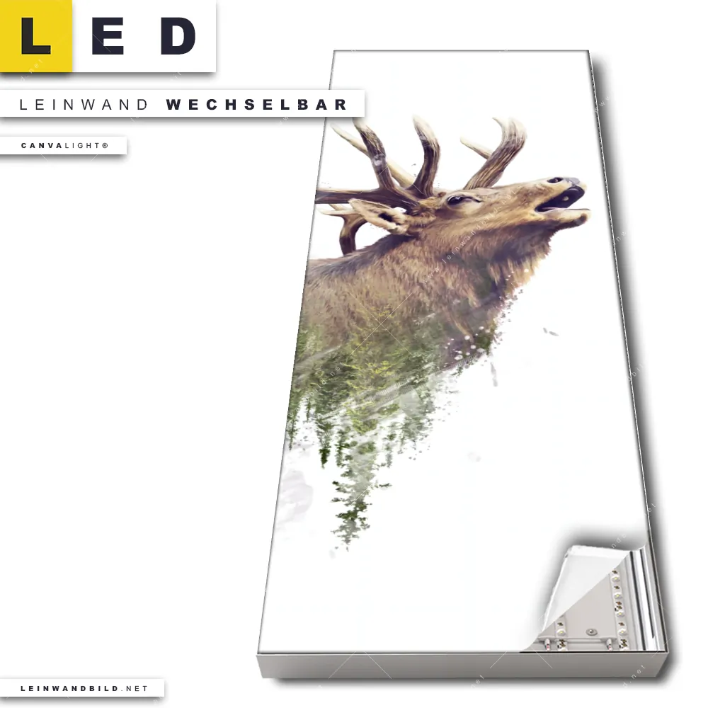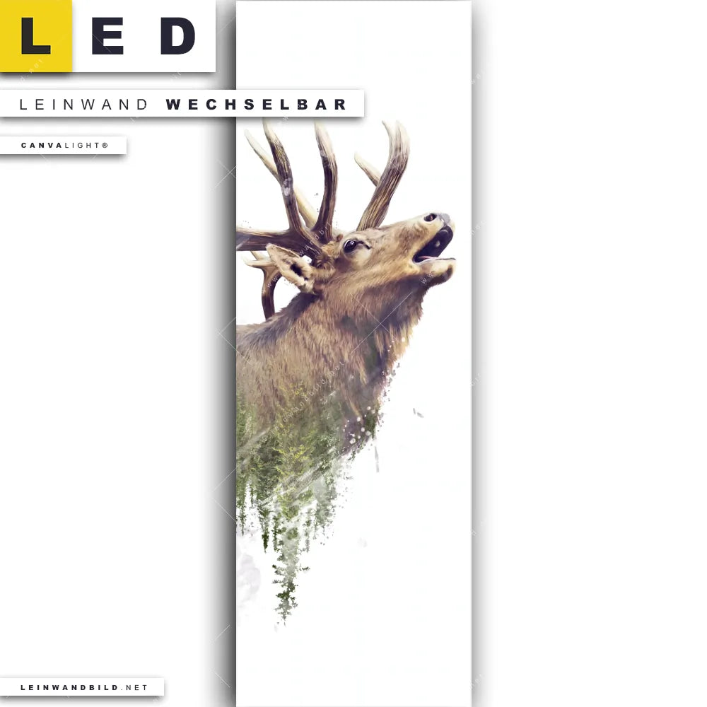 LED Leinwandbild Canvalight® TEX | Hirsch & Wald No.2 | Schmal