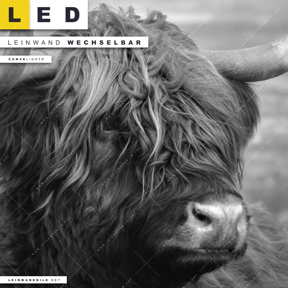 Du bist auf der Suche nach einem Tierwelt LED Leinwandbild im Querformat? Begriffe wie Tier, Stier, Hochlandkuh, Highlander, Büffel, Rind, Bulle, Hochlandrind, Kuh haben Dich auf der Suche nach Deinem neuen XXL LED Wandbild mit wechselbarer Leinwand inspiriert? Farben wie Schwarz, Weiss dürfen auf Deinem neuen breiten Leinwand-LED-Bild nicht fehlen und Leuchtbilder im Modern Art, Natürlich - Realistisch Stil passen perfekt zu Deinem Einrichtungsstil?