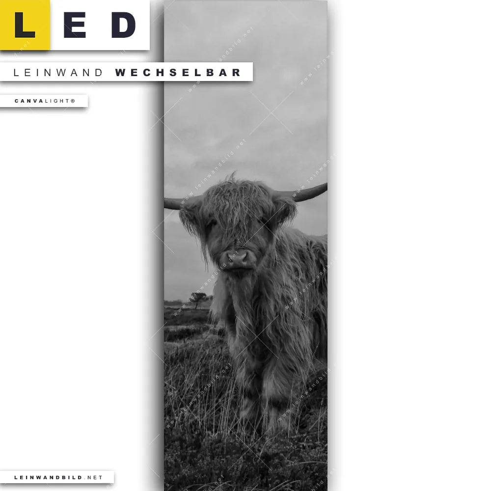 Du bist auf der Suche nach einem Tierwelt LED Leinwandbild im Schmalen Format? Begriffe wie Tier, Stier, Hochlandkuh, Highlander, Büffel, Rind, Bulle, Hochlandrind haben Dich auf der Suche nach Deinem neuen XXL LED Wandbild mit wechselbarer Leinwand inspiriert? Farben wie Schwarz, Weiss dürfen auf Deinem neuen Leinwand-LED-Bild im Panorama-Hochformat nicht fehlen und Leuchtbilder im Natürlich - Realistisch Stil passen perfekt zu Deinem Einrichtungsstil?