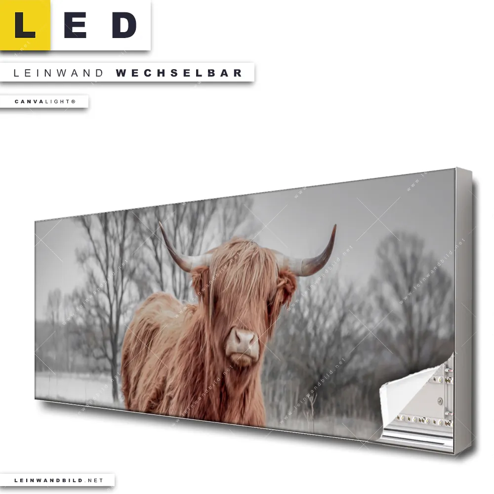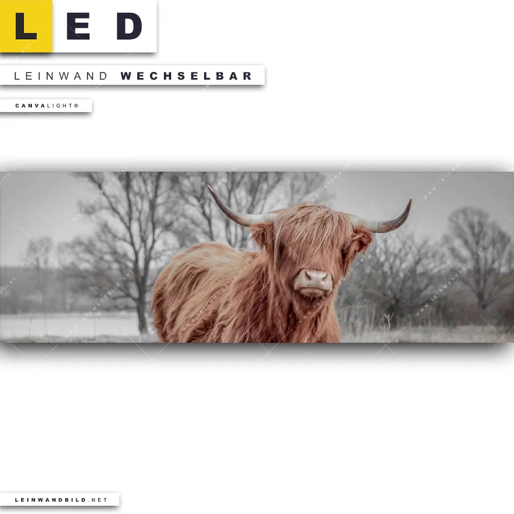 LED Leinwandbild Canvalight® TEX | Hochlandrind No.1 | Panorama