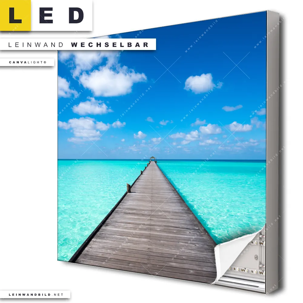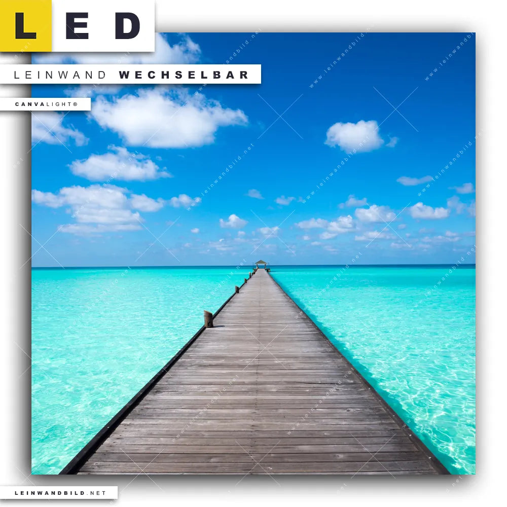 Du bist auf der Suche nach einem Strand - Meer, Landschaften LED Leinwandbild im Quadratischen Format? Begriffe wie Meer, Steg, Strand, Sommer, Weg, Südsee - Karibik, Urlaub - Reisen haben Dich auf der Suche nach Deinem neuen XXL LED Wandbild mit wechselbarer Leinwand inspiriert? Farben wie Blau, Türkis dürfen auf Deinem neuen Leinwand-LED-Bild nicht fehlen und Leuchtbilder im Natürlich - Realistisch Stil passen perfekt zu Deinem Einrichtungsstil?