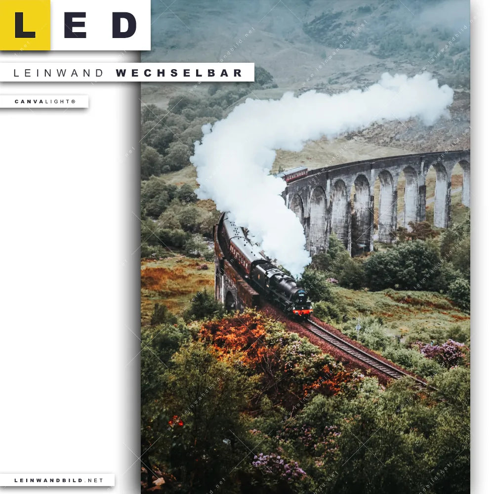 Du bist auf der Suche nach einem Fahrzeuge, Landschaften LED Leinwandbild im Hochformat? Begriffe wie Hogwarts-Zug, Dampfzug, Glenfinnan-Viadukt, Schottland, Brücke, Eisenbahn haben Dich auf der Suche nach Deinem neuen XXL LED Wandbild mit wechselbarer Leinwand inspiriert? Farben wie Ocker, Braun, Grün, Grau , Orange dürfen auf Deinem neuen Leinwand-LED-Bild nicht fehlen und Leuchtbilder im Natürlich - Realistisch Stil passen perfekt zu Deinem Einrichtungsstil?