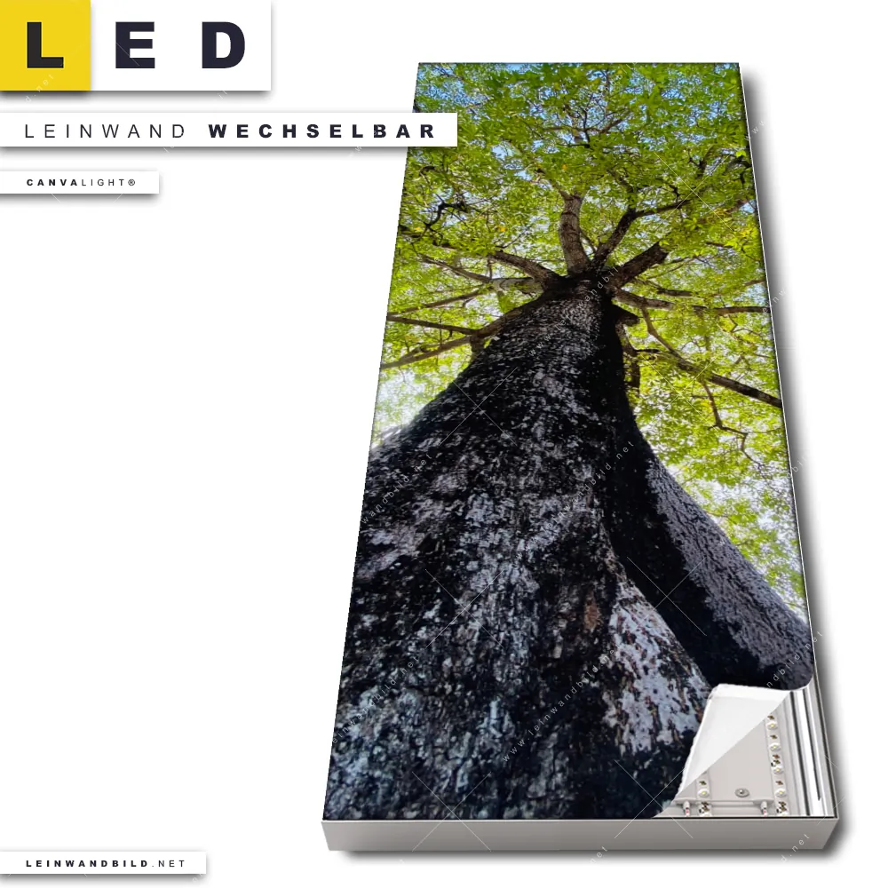 Du konfigurierst Dein individuelles LED Leinwandbild Canvalight® TEX | Hoher Baum | Schmal und wir produzieren es NEU für Dich. Unsere Landschaften, Wald - Bäume LED Bilder mit wechselbarer Textil-Leinwand sind KEINE Lagerware. Du bist Dir unsicher, welches Motiv oder Format das richtige für dein individuelles Canvalight® Leuchtbild ist, dann helfen wir dir gerne weiter und beraten dich!