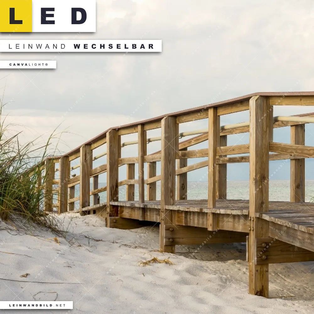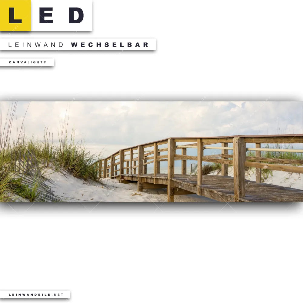 LED Leinwandbild Canvalight® TEX | Holzsteg & Dünen | Panorama