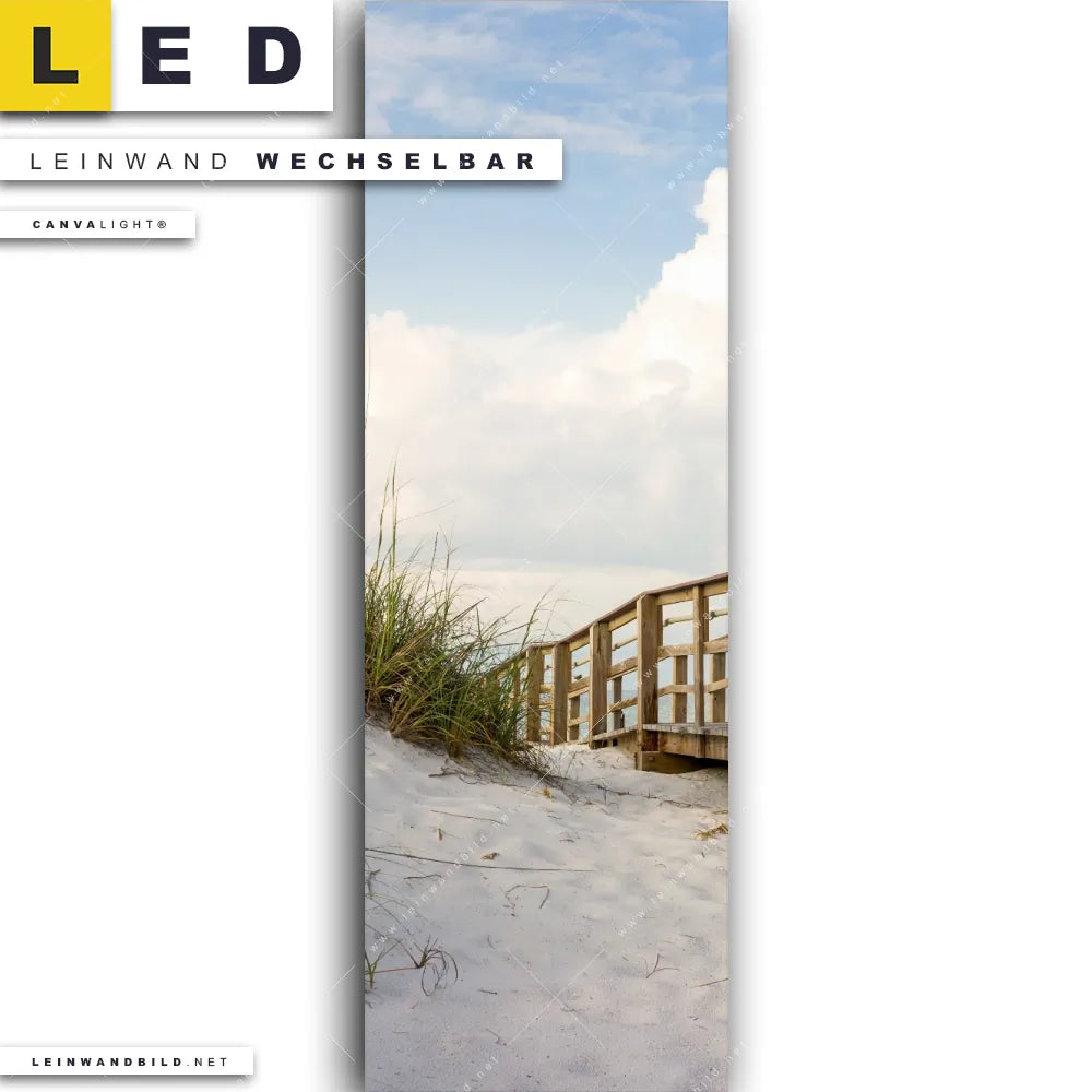 LED Leinwandbild Canvalight® TEX | Holzsteg & Dünen | Schmal