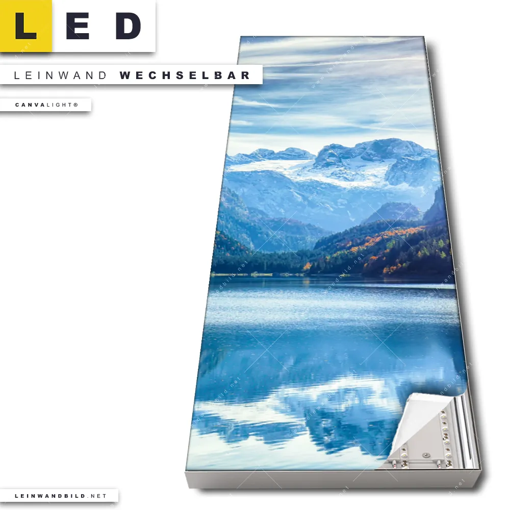 LED Leinwandbild Canvalight® TEX | Idyllischer Bergsee im Gebirge | Schmal