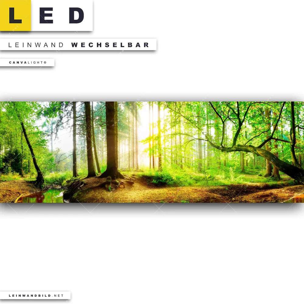 LED Leinwandbild Canvalight® TEX | Idyllischer Wald bei Sonnenaufgang | Panorama