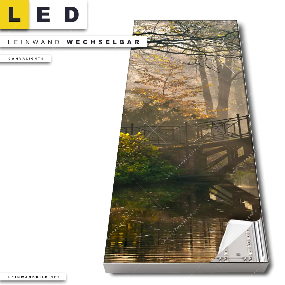 Du konfigurierst Dein individuelles LED Leinwandbild Canvalight® TEX | Idyllischer Wald mit Brücke | Schmal und wir produzieren es NEU für Dich. Unsere Wald - Bäume, Landschaften LED Bilder mit wechselbarer Textil-Leinwand sind KEINE Lagerware. Du bist Dir unsicher, welches Motiv oder Format das richtige für dein individuelles Canvalight® Leuchtbild ist, dann helfen wir dir gerne weiter und beraten dich!
