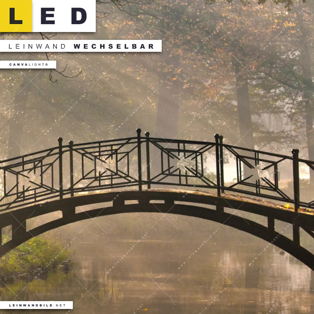 LED Leinwandbild Canvalight® TEX | Idyllischer Wald mit Brücke | Schmal