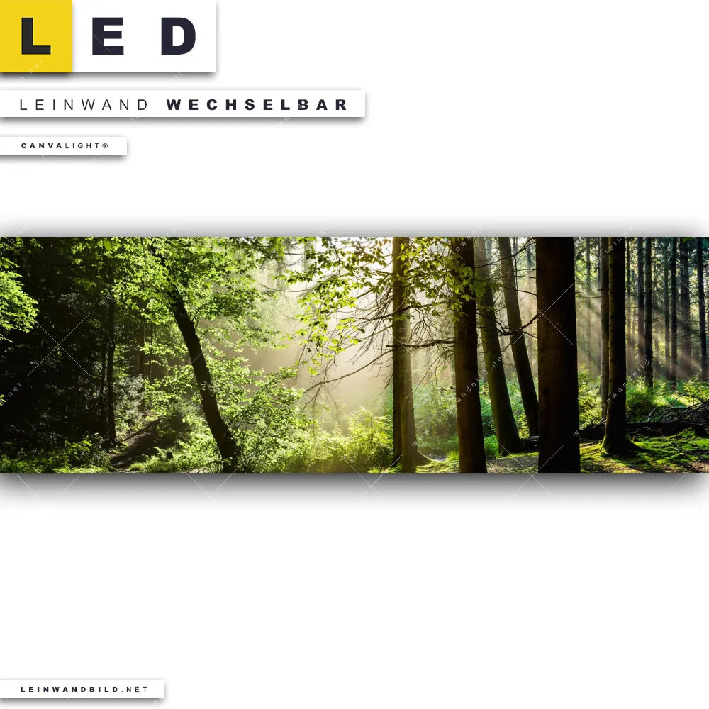 Dann sollte das LED Leinwandbild Canvalight® TEX | Im Wald | Panorama den Weg zu Dir finden. Das stufenlos dimmbare Leinwandbild Bäume in sommerlichem Wald im steckerfertigen Leuchtrahmen mit Fernbedienung und optionaler Farbtemperatursteuerung fügt sich als Eye-Catcher harmonisch in jedes Arzt - Praxis, Büro - Kanzlei, Wohnzimmer - Schlafzimmer Raumkonzept ein.