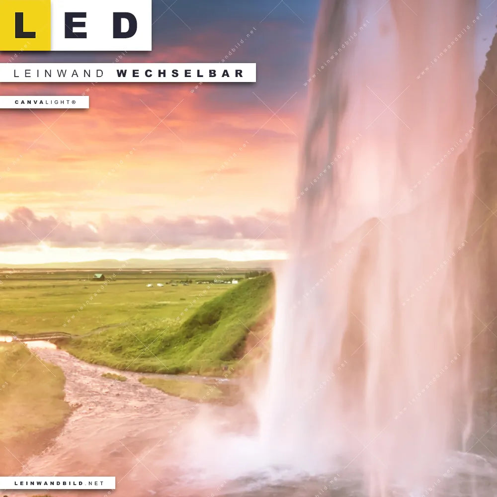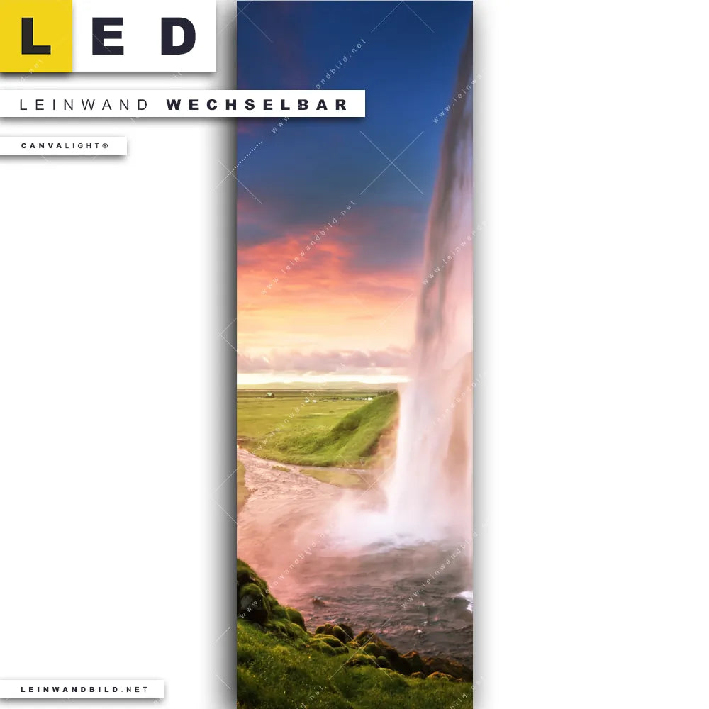 LED Leinwandbild Canvalight® TEX | Isländischer Wasserfall | Schmal