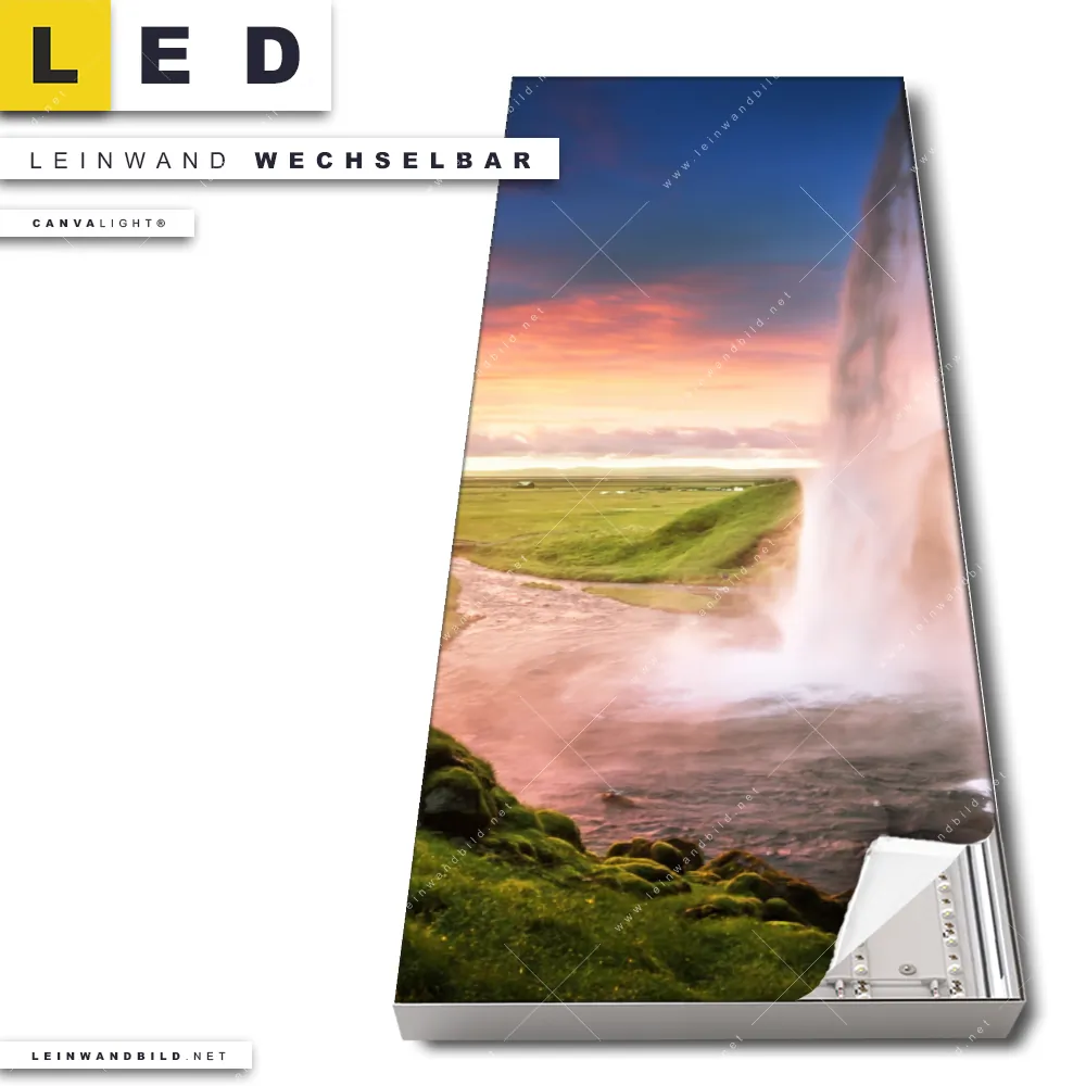 Du konfigurierst Dein individuelles LED Leinwandbild Canvalight® TEX | Isländischer Wasserfall | Schmal und wir produzieren es NEU für Dich. Unsere Landschaften LED Bilder mit wechselbarer Textil-Leinwand sind KEINE Lagerware. Du bist Dir unsicher, welches Motiv oder Format das richtige für dein individuelles Canvalight® Leuchtbild ist, dann helfen wir dir gerne weiter und beraten dich!