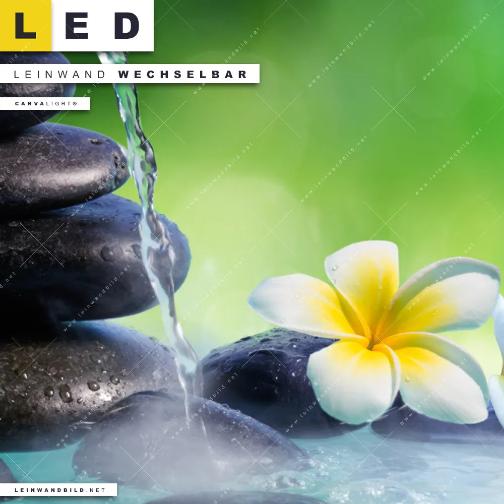 Dann sollte das LED Leinwandbild Canvalight® TEX | Japanischer Brunnen | Hochformat den Weg zu Dir finden. Das stufenlos dimmbare Leinwandbild Zen-Steine im Wasser im steckerfertigen Leuchtrahmen mit Fernbedienung und optionaler Farbtemperatursteuerung fügt sich als Eye-Catcher harmonisch in jedes Arzt - Praxis, Wohnzimmer - Schlafzimmer, Friseur - Beauty Raumkonzept ein.