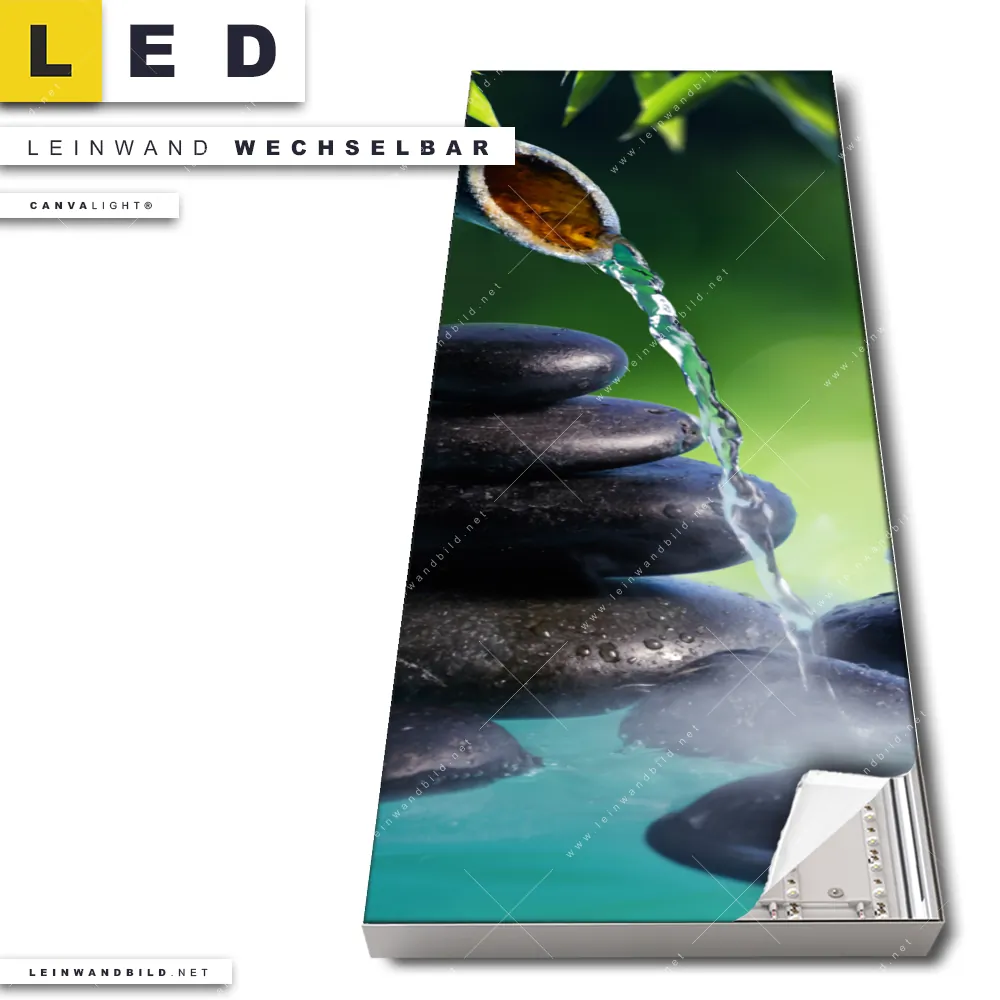 LED Leinwandbild Canvalight® TEX | Japanischer Brunnen | Schmal