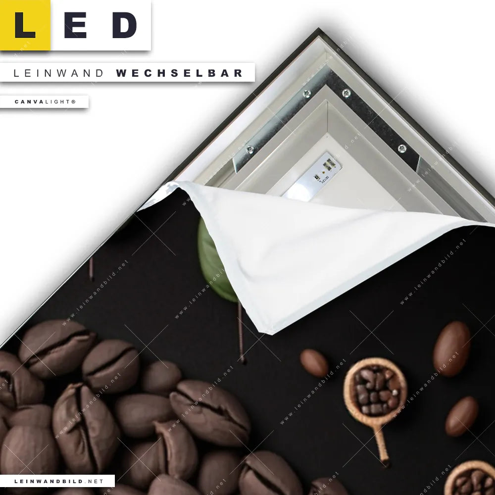 Du konfigurierst Dein individuelles LED Leinwandbild Canvalight® TEX | Kaffee mit Blattdekoration | Panorama und wir produzieren es NEU für Dich. Unsere Essen - Trinken LED Bilder mit wechselbarer Textil-Leinwand sind KEINE Lagerware. Du bist Dir unsicher, welches Motiv oder Format das richtige für dein individuelles Canvalight® Leuchtbild ist, dann helfen wir dir gerne weiter und beraten dich!